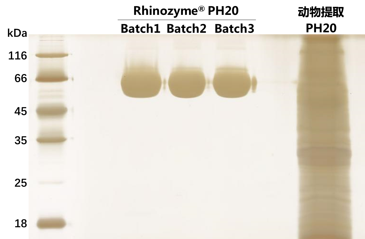 Rhinozyme? HAase PH20,是采用重組DNA技術(shù),使用CHO細胞高表達,經(jīng)過高度純化得到的重組人透明質(zhì)酸酶。產(chǎn)品純度大于99%,且生產(chǎn)全程不接觸動物源性成分。