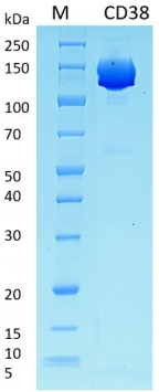 Human CD38,F(xiàn)c Tag 由中國倉鼠卵巢(CHO)細(xì)胞表達(dá);蛋白編號為 P28907-1(Val43-Ile300),帶 hFc 標(biāo)簽;