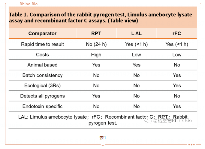 兔熱原測試(RPT)于1942年推出,是第一個也是唯一一個用于檢測藥物和醫(yī)療產(chǎn)品中熱原的體內(nèi)方法,到目前為止,非腸道給藥的產(chǎn)品一般都以這種方式進行測試。RPT存在各種限制,例如:無法區(qū)分不同的內(nèi)毒素和NEP;對疫苗等固有致熱藥物的反應只能定性;無法應用于非靜脈內(nèi)給藥的藥物;動物飼養(yǎng)和用于測試所需要投入較多時間和精力;而且最重要的是無法定量分析。