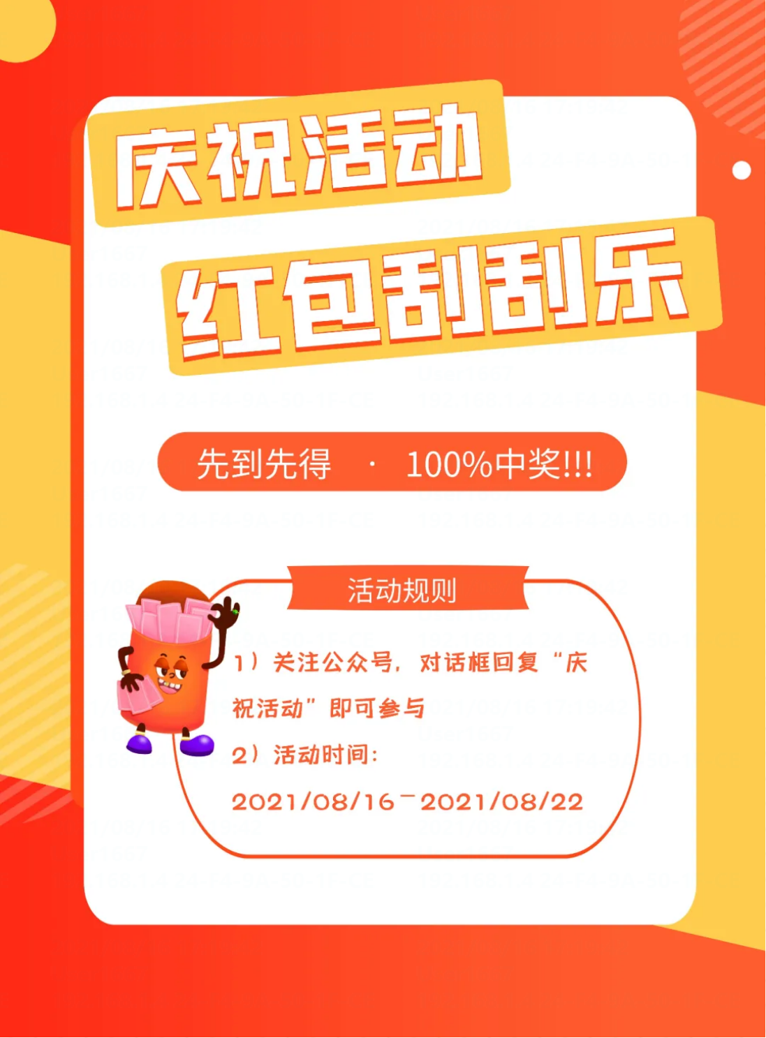 為了感謝大家對我們的關(guān)注和支持,特推出回饋活動“刮刮樂—隨機紅包”,最高可領(lǐng)88元現(xiàn)金紅包。